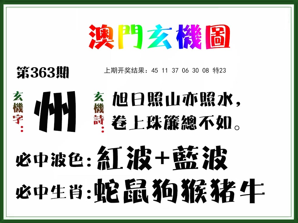 | 362期: ④肖 | 虎猪蛇鼠 | ????中 |