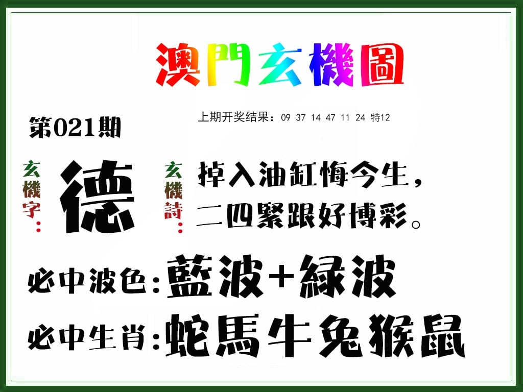 | 021期: ⑨肖 | 兔马龙鼠猪狗鸡羊猴 | ????中 |